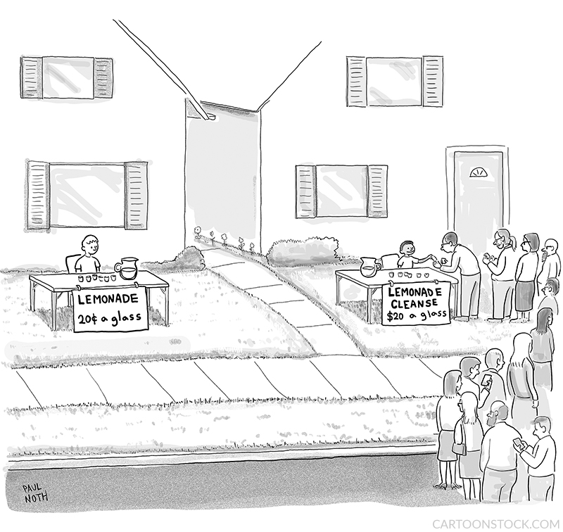 Even an enterprising child can exploit the diet craze. Paul Noth offers a twist on the old cartoon setup of the lemonade stand. It’s all about the marketing.