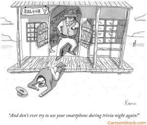 Westerns are a unique American offering, whether on TV or in the theater. Many a cowboy conflict started at the poker table with underhanded play. If caught, you were lucky to be run out of town or roughly tossed into the street. Zachary Kanin uses the old anachronism approach to create the gag, and imagines a West more mild than wild.