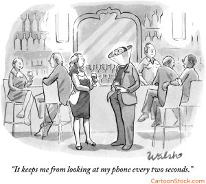 I’m guessing Walsh liked the three captions about screens because he has, on a few previous occasions, mocked our addiction to them: